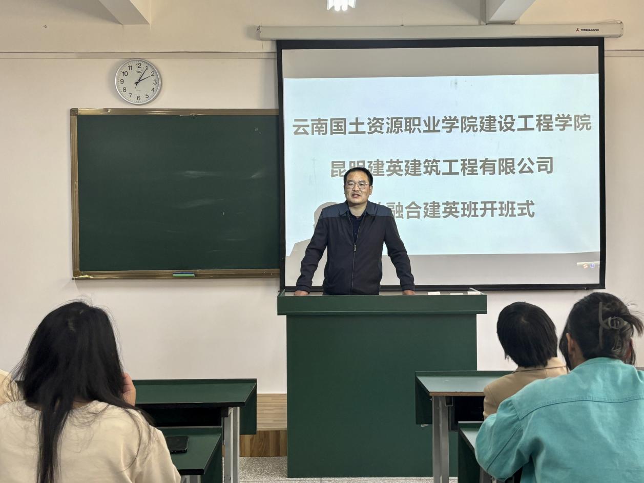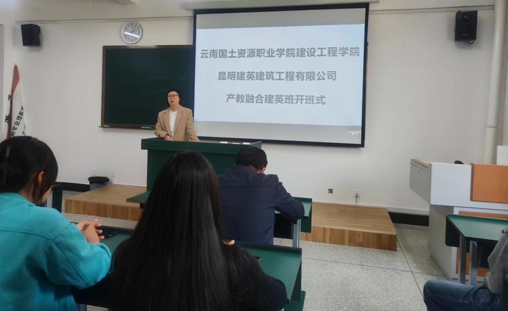 为深入开展校企合作,推进产教融合,为学生现代学徒制、岗位实习和就业提供更多、更好的机会。2024年3月13日下午14:00,今年会jinnianhuicom在明尚楼C403教室举行产教融合“建英班”开班仪式。参加本次开班仪式的有昆明建英建筑工程有限公司总经理陈艳,业务骨干杨文巧、李赛昭,今年会jinnianhuicom党总支副书记李洪香,工程造价专业教研室主任罗昌杰、专业带头人李葆康和工程造价专业的部分辅导员、班主任及学生。本次开班仪式由副书记李洪香主持。