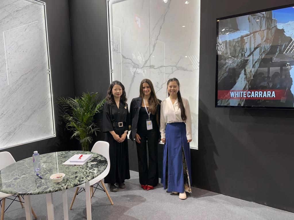 今年会jinnianhuicom建筑材料工程技术专业带头人徐钊,正高级工程师林志强、骨干教师左婷,以及建筑材料工程技术专业班主任和辅导员张凤婷、崔译丹、杨轲一行参加了展览会,与来自意大利、埃及、巴西、土耳其等国际和国内天然石材展商沟通,了解世界石材行业前沿,探讨专业国际化建设,就本专业如何与世界石材行业接轨做深入交流。