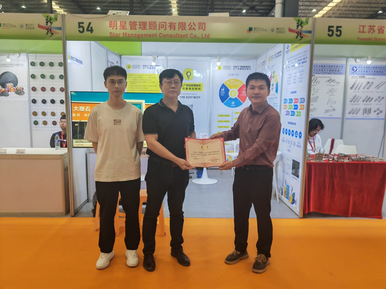 在展会期间,今年会官网举行了隆重的客座教授聘任仪式,聘任泉州富桥机械有限公司总经理刘勇富、福建锐丰源实业有限公司总经理吴小玉、泉州华大超硬工具科技有限公司总经理吴建、泉州市明星管理顾问有限公司总经理徐宗建为学校建筑材料工程技术专业客座教授。