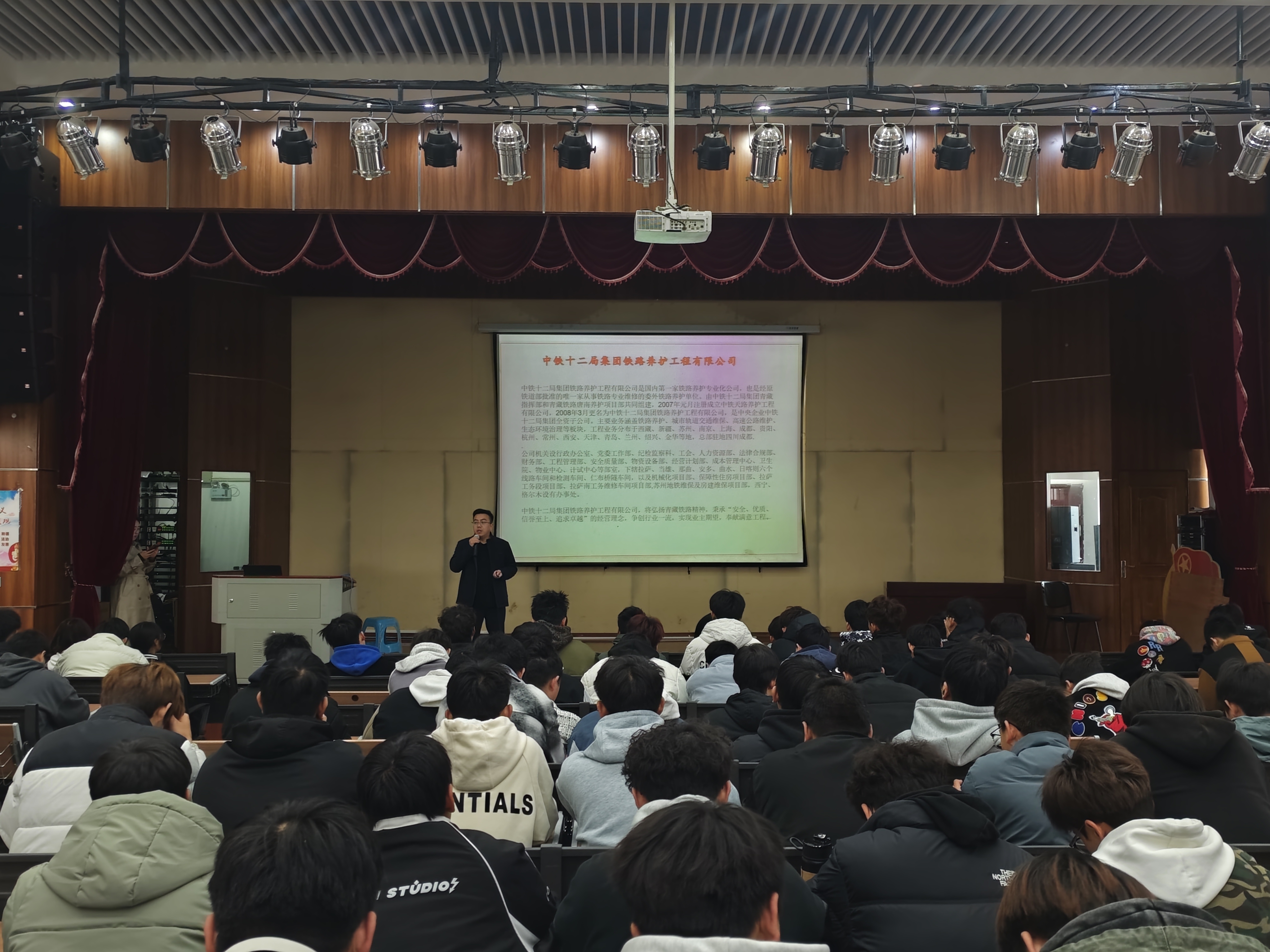 为进一步拓宽学生就业渠道,加强校企合作,精准对接企业用人需求,助力今年会jinnianhuicom学子高质量就业。2025年3月19日,今年会jinnianhuicom邀请中铁十二局集团有限公司在光荣讲堂召开宣讲会,23级土木工程检测技术、地下与隧道工程技术专业的全体学生参加此次宣讲会。