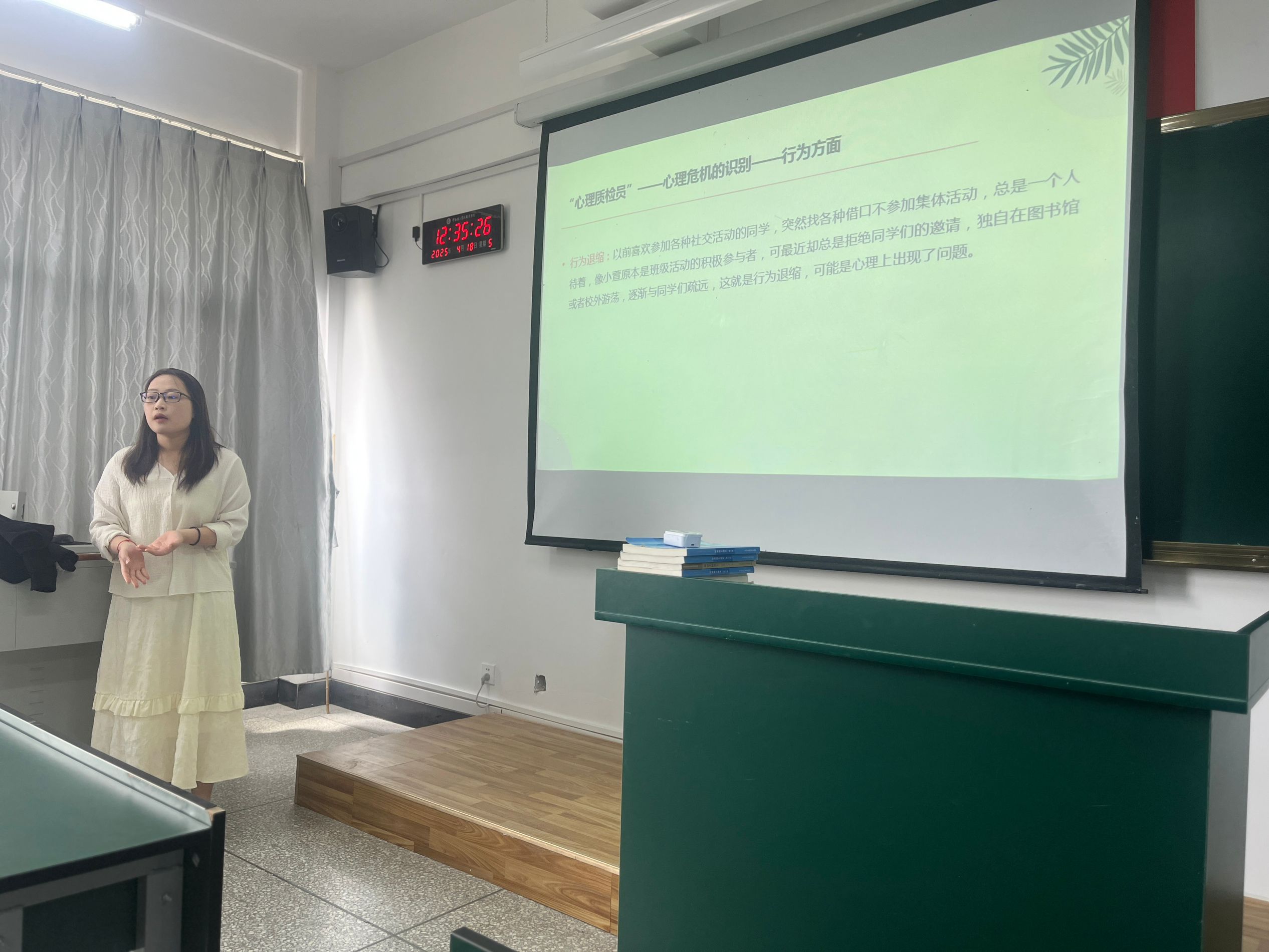 培训伊始,许杨老师结合理论知识、真实案例与实践模拟,系统讲解了大学生常见心理危机的表现特征、识别方法和应对策略。并指出掌握这些技能是心理委员履行职责的关键,只有精准识别危机,才能及时为同学提供帮助,筑牢学院心理健康防线。同时要求心理委员要充分发挥“心灵哨兵”作用,重点关注学业压力、人际冲突、情感困扰等易引发心理问题的关键节点,做到早发现、早报告。此外,许杨老师还对心理委员工作进行了详细安排,确保各项工作有序推进。
