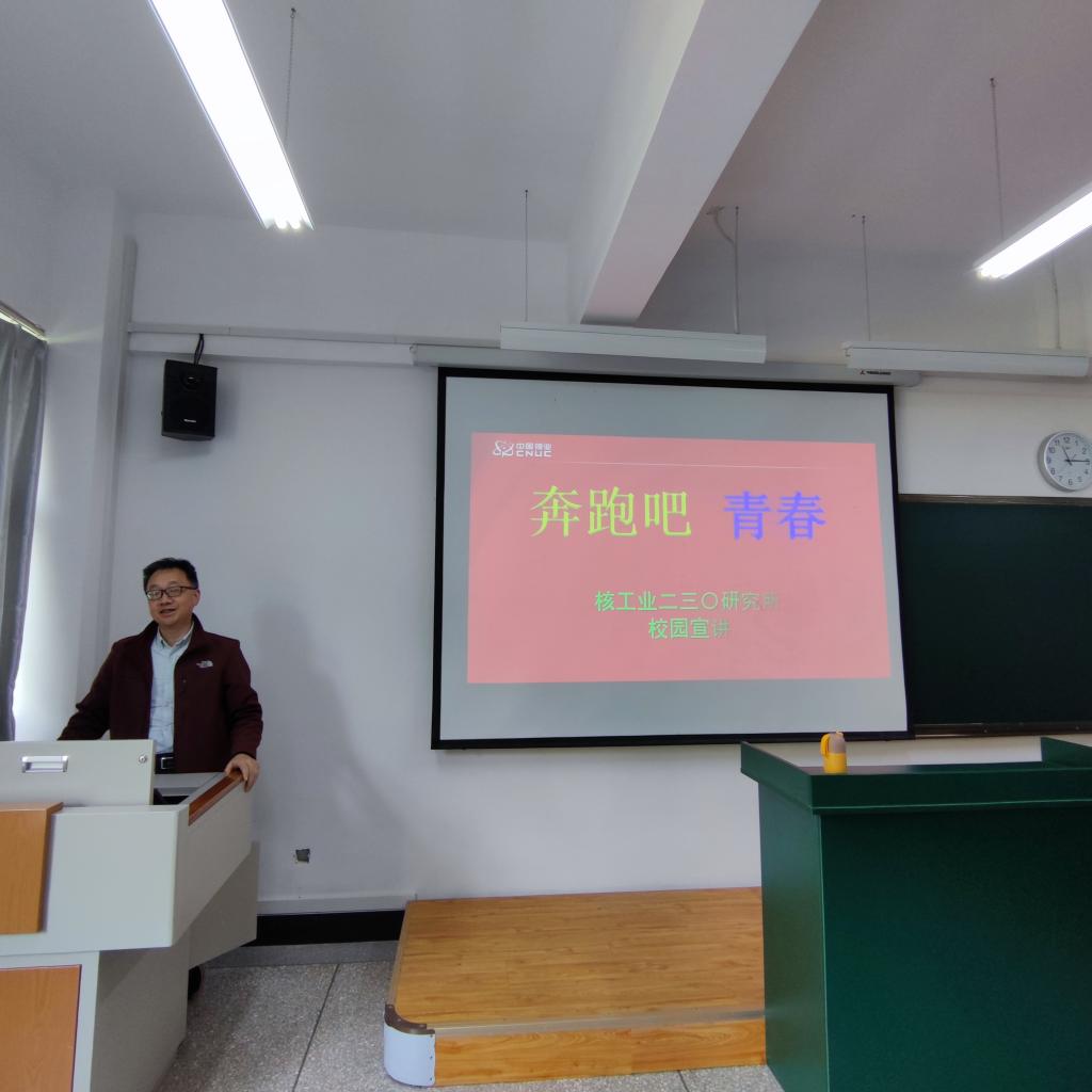 最后,核工业二三〇研究所的两位领导在教研室主任郎学伟老师的带领下深入班级进行企业介绍。