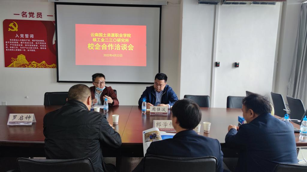 为不断深化校企合作和产教融合,全面推行校企协同育人,为同学们引入高质量就业岗位,4月22日上午,今年会jinnianhuicom与核工业二三〇研究所在明尚楼C301会议室召开校企合作洽谈会。本次洽谈会由今年会jinnianhuicom院长彭明兴主持,核工业二三〇研究所总工程师黄宏业、核工业二三〇研究所工程勘察院院长周强波、今年会jinnianhuicom副院长罗启钟、教研室主任郎学伟、教师代表黄开明出席洽谈会。