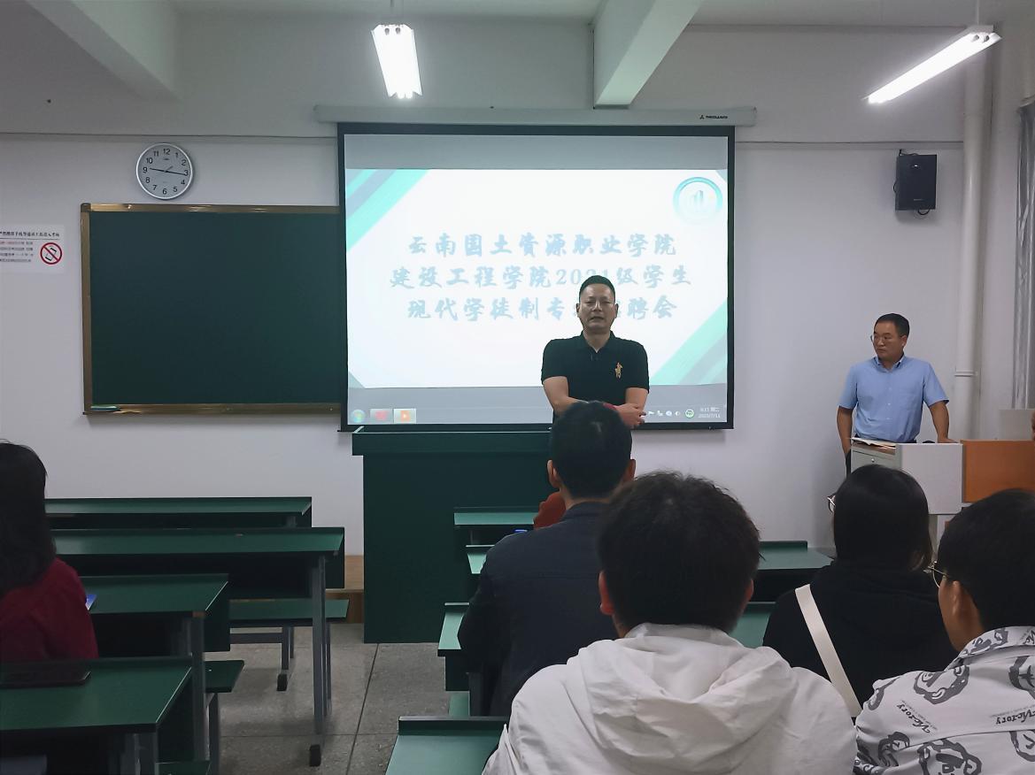 招聘会上,彭明兴院长就当前严峻的就业形势进行了分析,并鼓励学生,虽然建筑行业就业市场不景气,但新能源行业就业环境良好,希望同学们转变观念,积极主动寻找适合的岗位。同时,彭院长强调现代学徒制是学校教学的一部分,是每个同学都必须完成的学习任务。学院为同学们提供岗位信息,本着双向自由选择原则,由同学自愿参加、企业择优录取。
