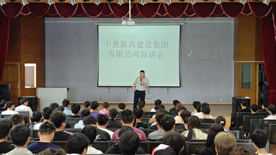 2025年4月17日下午,中奥新高建设集团有限公司在我校红山讲堂举办专场招聘宣讲会。学院副院长赵岩枫、2023级部分教师和辅导员以及全体学生参加宣讲会。