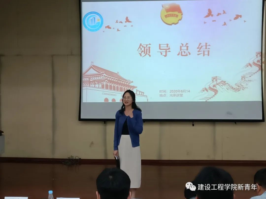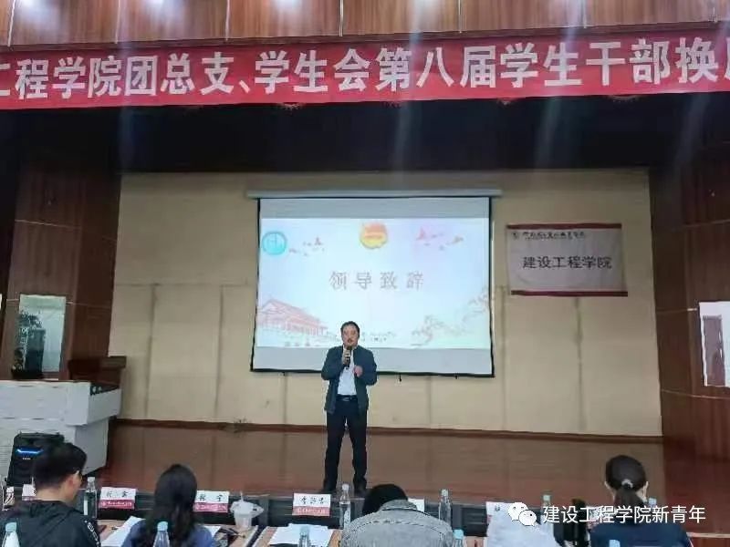 最后,团总支负责人张宁老师讲话,她表示每年的换届大会她的心情都是复杂的,既有对上一届学生干部的依依不舍、满满感激,又有对新一届学生干部的满心期待,愿新一届学生干部拿稳“接力棒”,奔向“新征程”,服从学院整体安排,践行自己的承诺,在适合自己的岗位上发光发热,期待全体干部携手共建,成就自己、成就建工学院。
