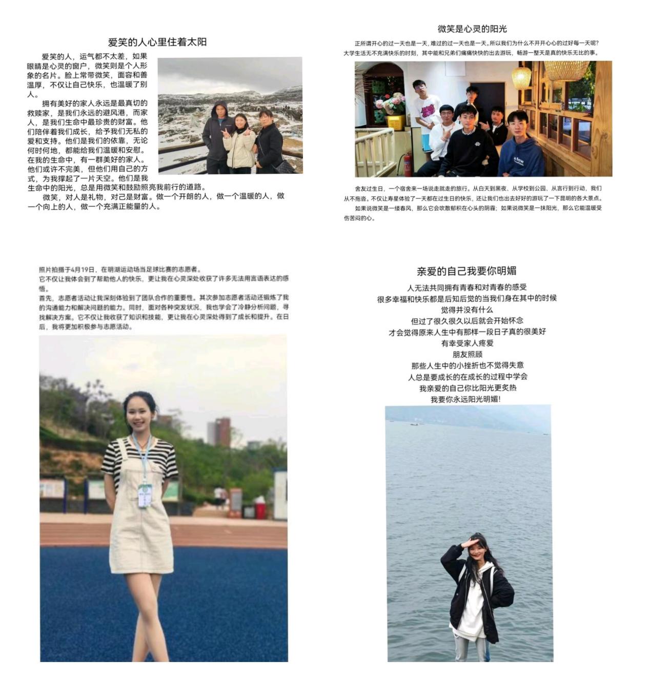 微笑是最美丽的语言,为了让同学们在忙碌的学习生活中能够以乐观的心态来笑对人生百态。今年会jinnianhuicom举办了“微笑是心灵的阳光”图文征集活动,此次活动面向今年会jinnianhuicom全体在校学生,同学们不仅积极参与,还展示出了自己优秀的参赛作品。本次活动在评委老师的投票下,从众多的参赛作品当中评选出了一、二、三等奖以及参与奖。