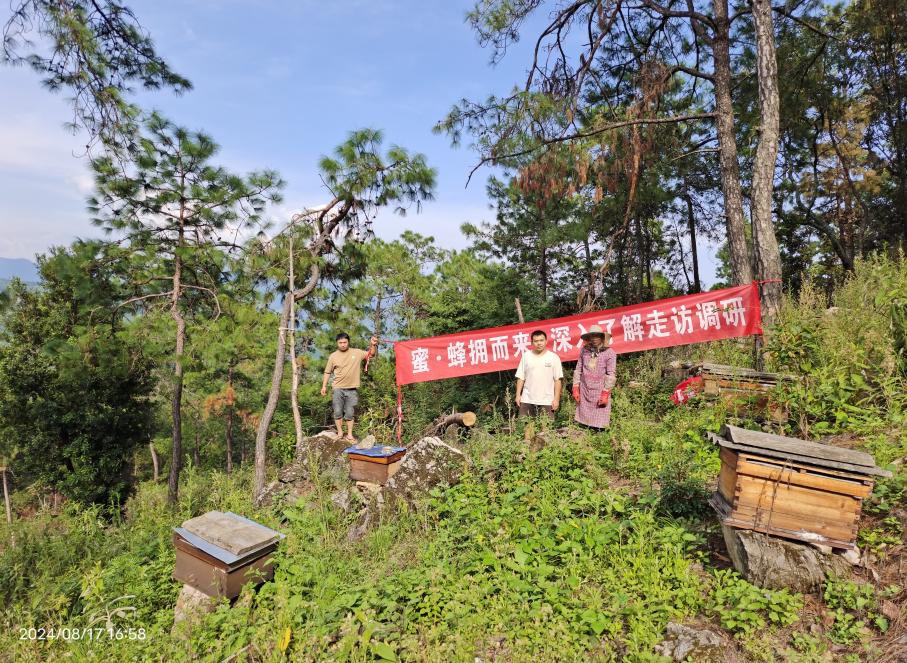 当日清晨,团队来到了位于华坪县将荣镇的蜜蜂养殖区。这里的农户们正在忙碌地采摘芒果蜜。团队深入殖区,与农户们进行了深入的交流。通过调研得知,蜂蜜的养殖并不容易,需要精细的管理和不断的探索,而蜂蜜的采集更是需要专业的技术和经验。通过与农户的交流,团队了解到农户们的养殖与生产情况,以及所面临的困难与挑战。