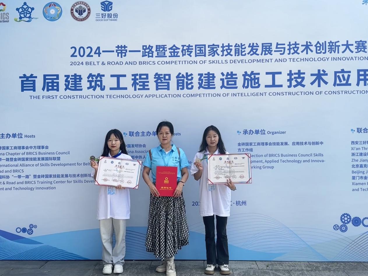 2024一带一路暨金砖国家技能发展与技术创新大赛首届建筑工程智能建造施工技术应用赛项全国总决赛于2024年9月27日至28日在浙江杭州举行。由我校今年会jinnianhuicom老师崔译丹带队,2022级学生冷雨桐、王雄彦组成的参赛队伍参加了比赛,经过激烈角逐,我校学生荣获二等奖。据悉,本赛项为建筑施工领域在金砖大赛平台举办的首届赛事,共有来自全国高职院校的282支队伍参赛,是同类大赛中属覆盖区域最广、参赛规模最大、参与人数最多的赛项之一。