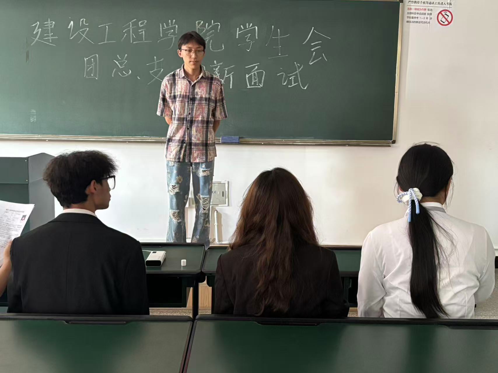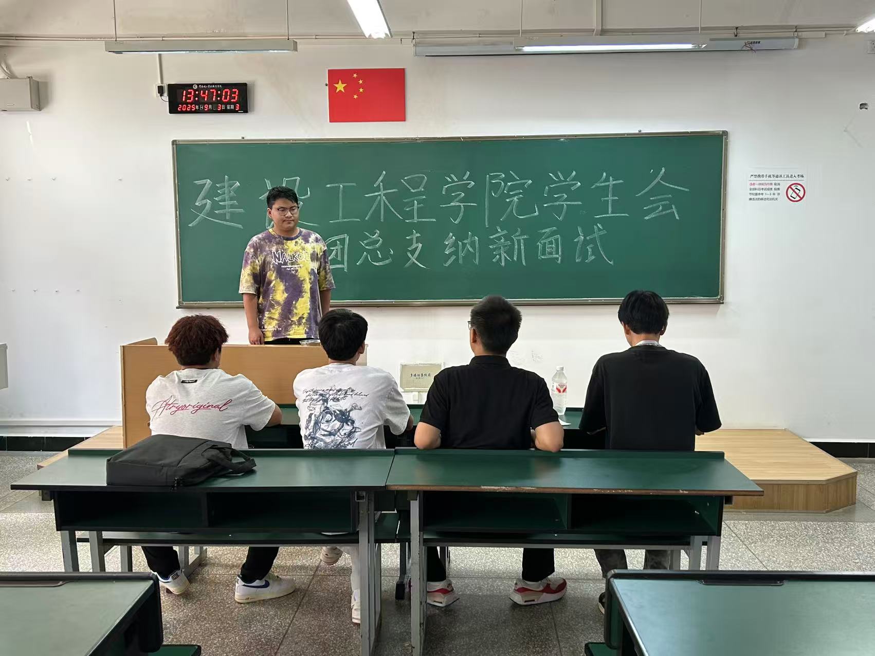 本次面试于9月3日13:30在笃行楼正式拉开帷幕,九个部门分别在指定教室开展面试工作。为保障面试有序推进,学院安排25级参与面试的新生于13:20前抵达笃行楼指定候场教室等候,并携带个人报名表以备核查。