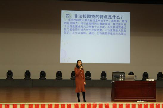 宣讲会上,院长彭明兴首先作动员讲话。他指出:目前非法校园贷已严重扰乱社会秩序影响破坏家庭幸福生活,严厉打击非法校园贷势在必行。希望同学们要增强安全防范意识,快乐顺利的完成大学学业。宣讲会分为两场,分别由学院团总支书记张宁老师和辅导员徐梦菲老师主讲。两位主讲人以非法校园贷引发的案例为切入点,用图表及数据对非法校园贷的影响和危害进行了深入剖析,从 “校园贷”、“现金贷”、“套路贷”的风险识别与防范,远离非法校园贷,树立正确消费观,以及遇上“校园贷”该怎么办等方面向同学们做了详细介绍。劝诫同学们要树立正确的价值观和消费观,自觉远离非法网络借贷行为,规避盲目消费风险,提高防范风险的能力,强化自我保护意识,主动了解相关金融贷款知识和法律法规,辨别真伪,不断增强自身的辨别能力,避免被不良网贷的表面假象误导而陷入困境,提升自我保护能力。同学们纷纷表示收获很大,对校园贷有了更深的了解,学生干部们表示今后要做安全教育的引领者,帮助更多同学远离校园贷侵害。