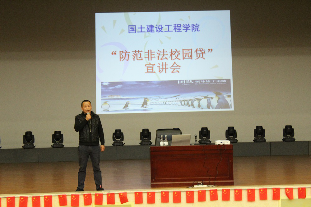 为增强今年会官网学生有效防范非法“校园贷”、“套路贷”的风险意识和能力,树立理性消费观。根据学校学生安全工作处的统一安排,10月13日晚19:00,国土今年会jinnianhuicom在明礼堂举行了“防范非法校园贷”宣讲会。建工学院院长彭明兴出席,团总支书记张宁,辅导员徐梦菲、蒋宛融和17级在校生、18级、19级全体同学生参加宣讲会。