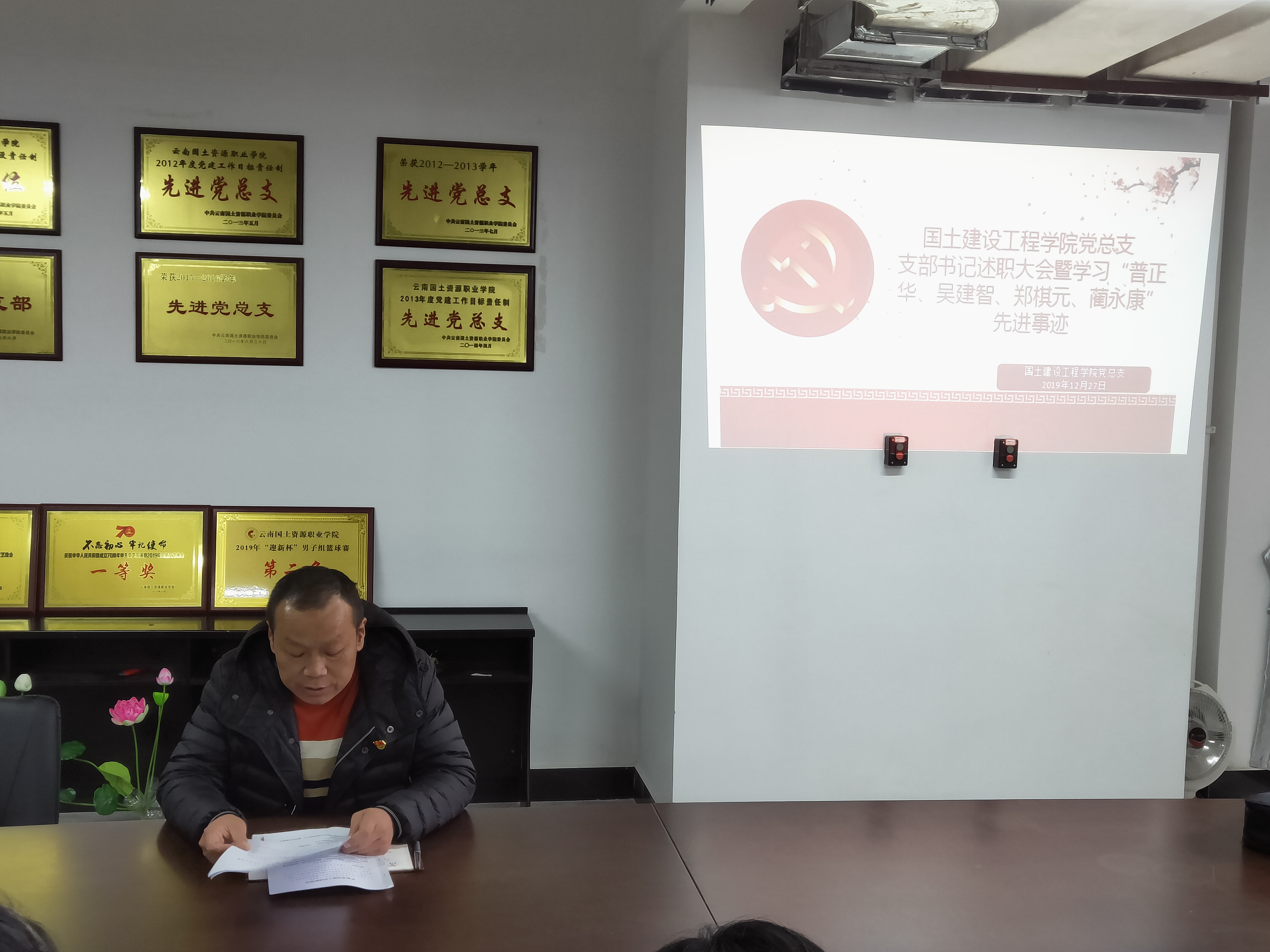 12月27日中午明尚楼c301,国土今年会jinnianhuicom党总支组织召开支部书记述职会。建工学院全体党员和非党员教师共34人参会,会议由党总支书记高昆同志主持,工程管理党支部书记张宁同志、工程造价党支部书记廖术龙同志、后勤党支部书记王春莲同志分别就2019年抓支部党建工作情况进行述职。