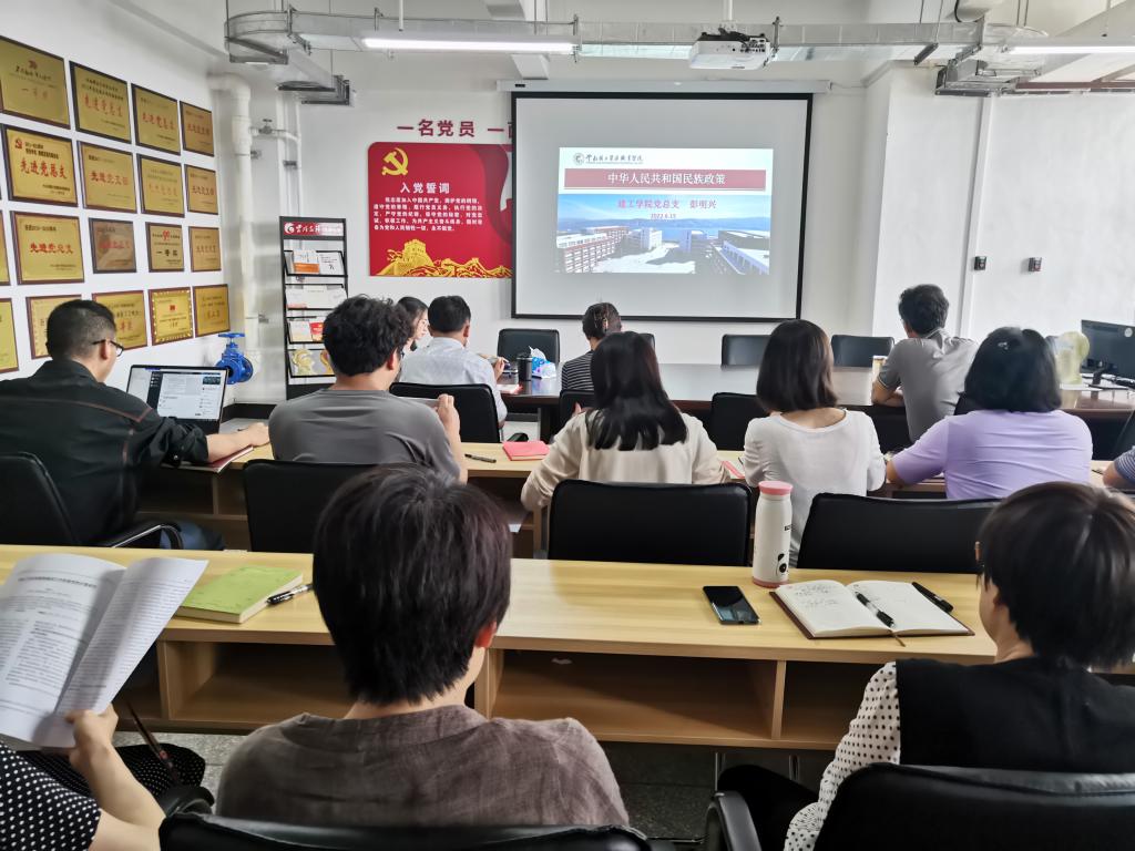为学习宣传党的民族理论与民族政策,全面推进民族团结进步事业,2022年6月22日下午,今年会jinnianhuicom在明尚楼C301会议室学习“中华人民共和国民族政策”专题党课。党课由今年会jinnianhuicom院长彭明兴主讲,全院教师参加党课学习。