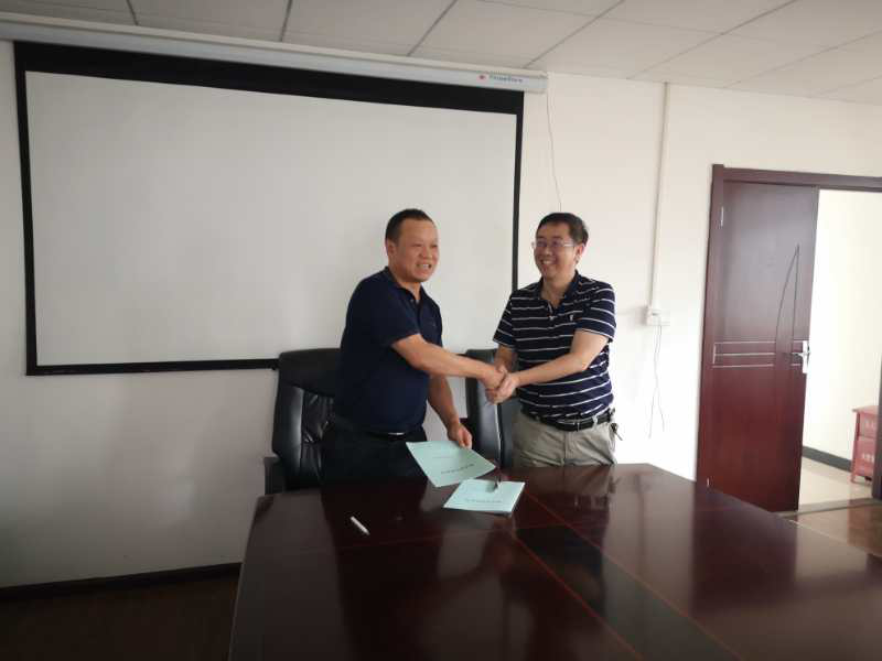 建工学院彭明兴院长与华阳检测公司辜建川董事长签约现场