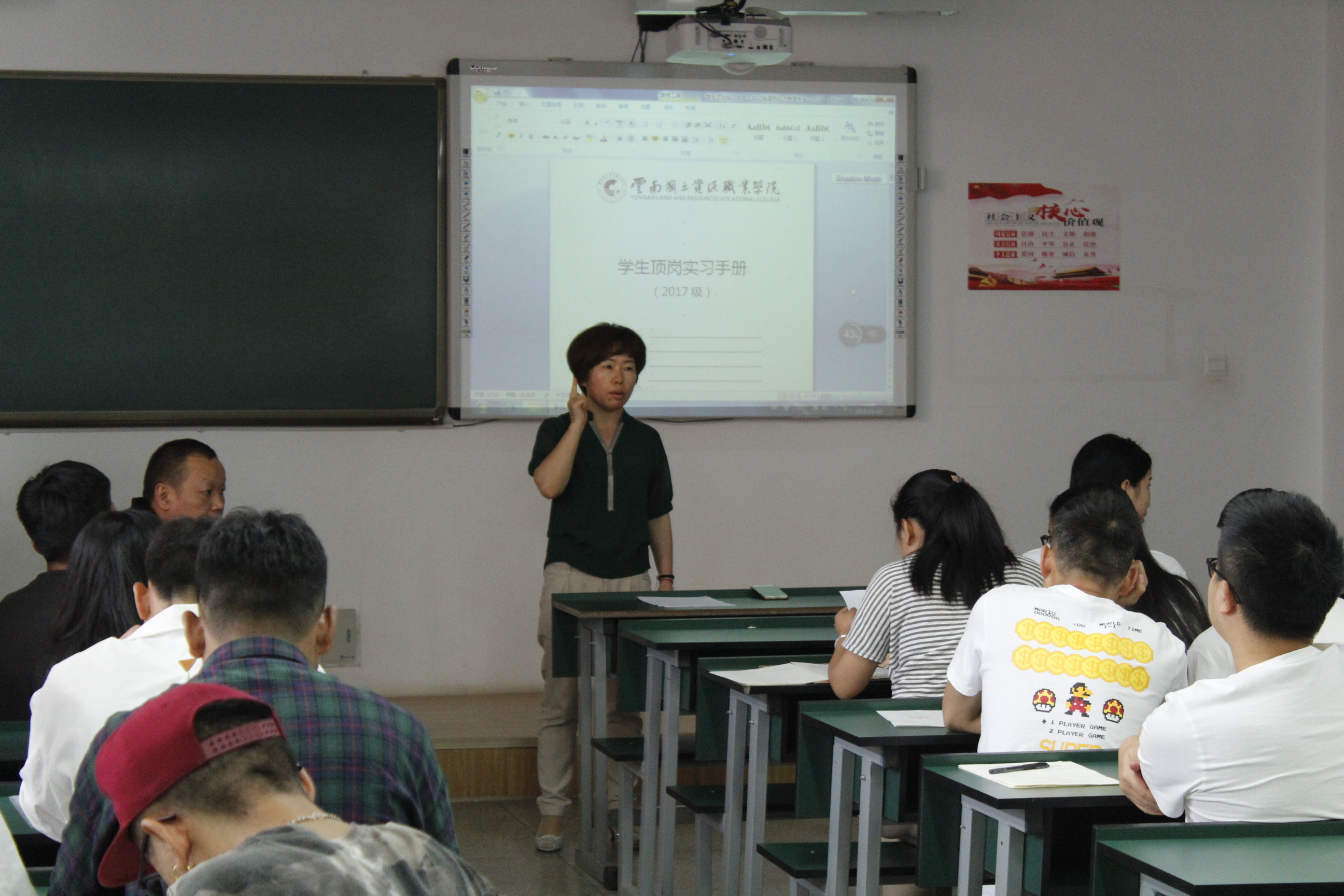 其次,李老师从安全的角度并结合真实案例向同学们强调顶岗实习期间的注意事项:防传销、防电信诈骗、防淘宝刷单、注意交通安全、注意食品卫生安全;随后,高老师补充到:同学们参与的这个项目以外业为主,而兰坪县的几个乡镇属地质灾害多发区,且又恰逢雨季,希望同学们每到一个地方,开始工作时一定先注意观察周边的地势和地理环境,一定防范地质灾害对同学们造成的伤害;此次顶岗实习与以往的不一样,是成建制的整班派出,代表的是学校、学院的形象,希望同学们一定要团结、互助,以最良好的状态展现国土人的形象;学校和社会有很大的区别,从学校到社会,同学们能很快适应识变——求变——应变的过程。