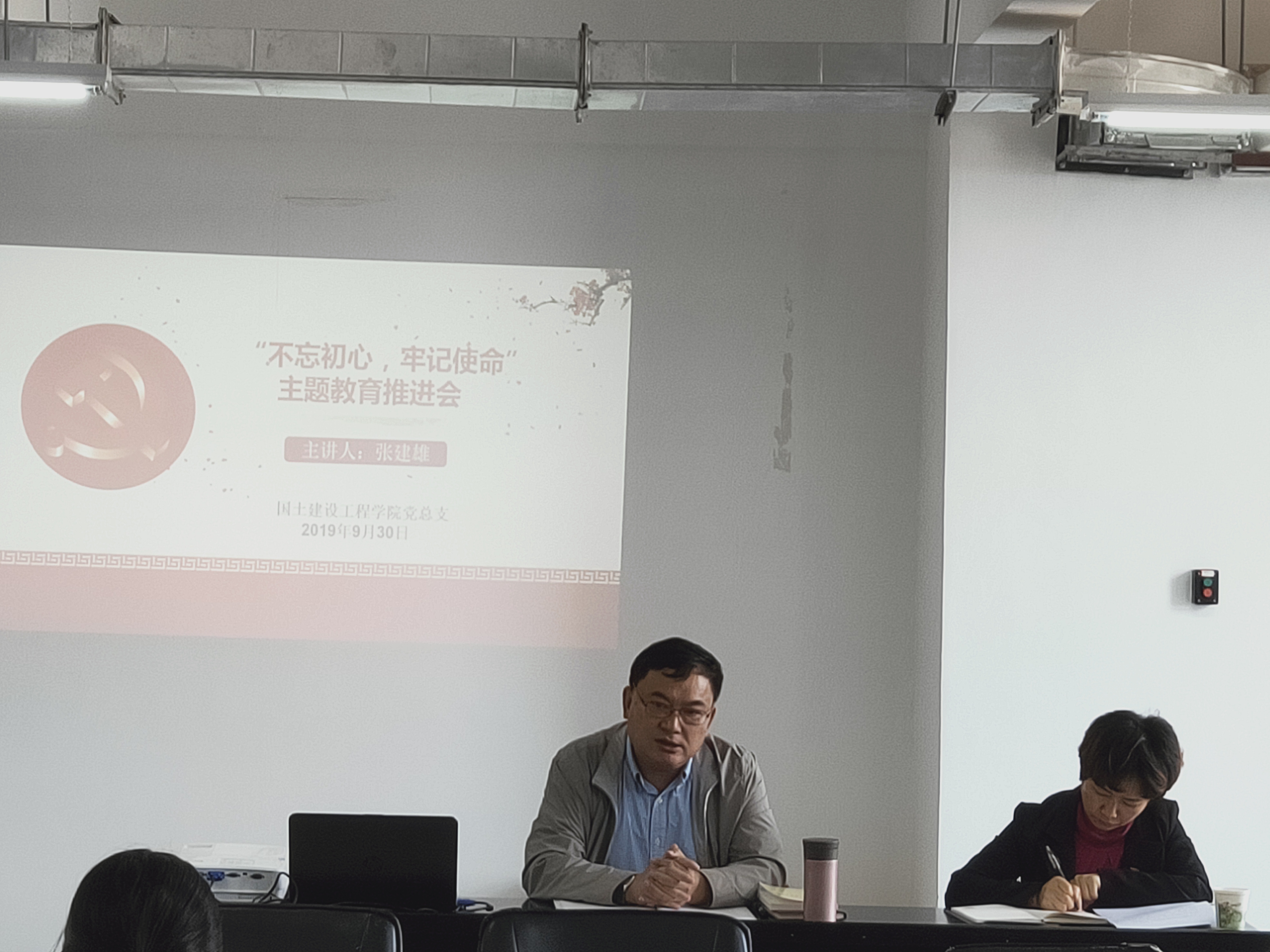 9月30日中午1点,国土今年会jinnianhuicom党总支在明尚楼C301开展“不忘初心、 牢记使命”主题教育推进会,会议由张建雄校长宣讲,党总支书记高昆主持,总支全体35名党员共同参会。