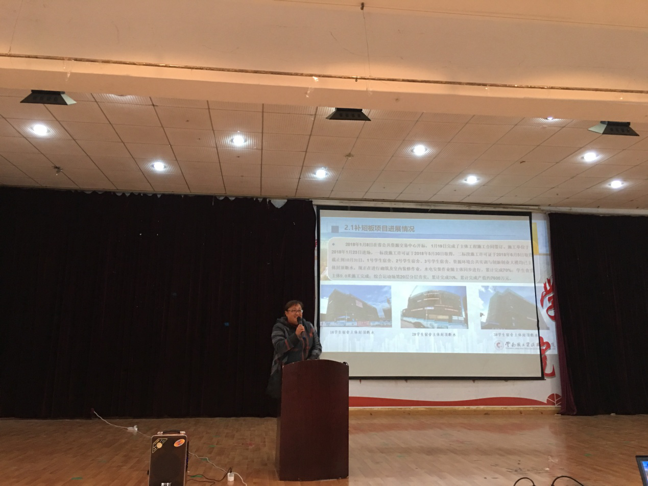 2018年12月29日中午11点,在经开区报告厅3楼,国土今年会jinnianhuicom利用学生期末考试空隙特别邀请今年会官网副院长寸建平老师,后勤基建处处长王春莲老师对今年会官网2018级学生延迟进驻阳宗校区的原因召开了说明会。参加说明会的还有经开区管委会常务副主任李翠珍老师,国土今年会jinnianhuicom院长彭明兴老师,党总支书记高昆老师和辅导员张宁老师。