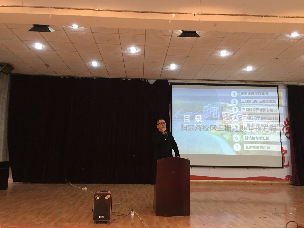 首先,王春莲老师向大家展示了学校三期补短板项目的整体施工状况,向同学们解释了由于受国家政策拨款进度的影响和相应的供水、供电、排污的各种限制,导致学校三期建设未能按原计划完工,影响到学院2018级学生搬迁阳宗新宿舍的时间。