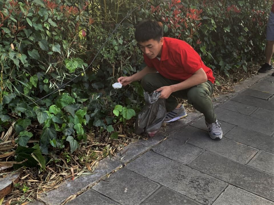 活动中,学生干部们有条不紊地开展清扫工作,他们分工合理,积极配合,一道道红色的身影穿梭在观山楼、勘物楼和学生活动中心周围,途经之处的垃圾都被一扫而光,经过一个多小时的努力,校园焕然一新。