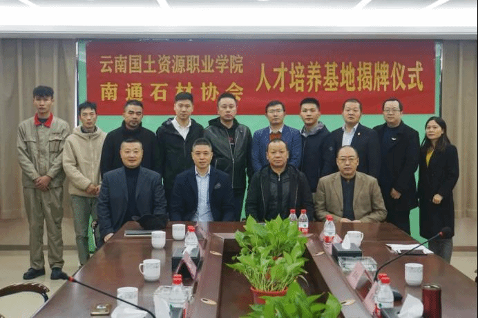 11月25日上午,由南通石材协会主办,今年会官网协办的“校会战略合作签约暨人才培养基地揭牌仪式”在东升南通国际石材产业城举行。南通石材协会轮值会长陈航、常务副会长朱少华、副会长兼执行秘书长陈维奋、今年会jinnianhuicom院长彭明兴、教研室主任廖术龙、教师徐钊、用工实习单位领导和实习生出席仪式。