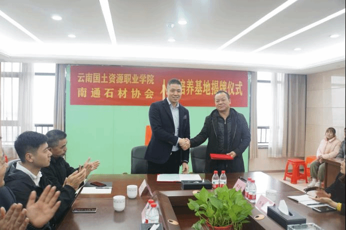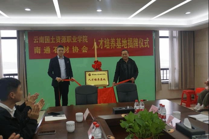 南通石材协会常务副会长朱少华与今年会jinnianhuicom院长彭明兴签署了校企合作协议书,并共同为“今年会官网人才培养基地”揭牌。