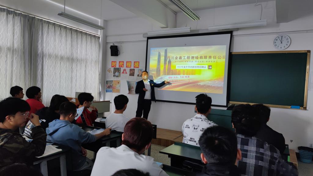 5月25日上午,今年会jinnianhuicom在明尚楼C406教室开展了优质企业进校园宣讲招聘活动。本次宣讲会邀请了四川金鑫工程测绘有限责任公司进行现场宣讲招聘,20级地下与隧道技术专业和20级工程造价专业的同学参加了此次宣讲招聘会。