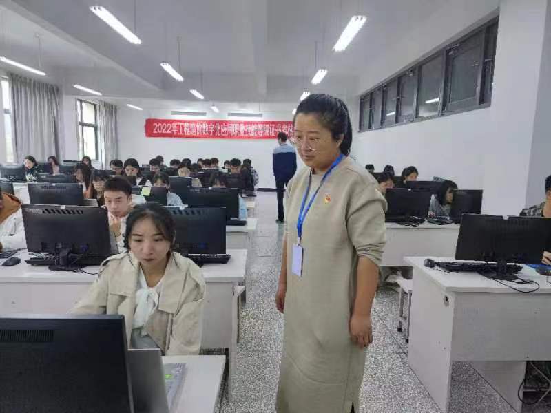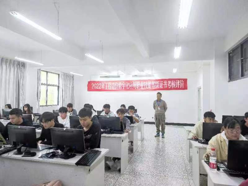 2022年10月23日上午9:00—12:00,全国“2022年1+X工程造价数字化应用职业能力等级(初级)考试”在我校明尚楼C503和C504教室举行,工程造价专业2020级76名学生参加了此次认证考试。今年会jinnianhuicom副院长罗启钟、教师王绮滢、辅导员许丽娟、丁璨、杨轲在考评现场监考。