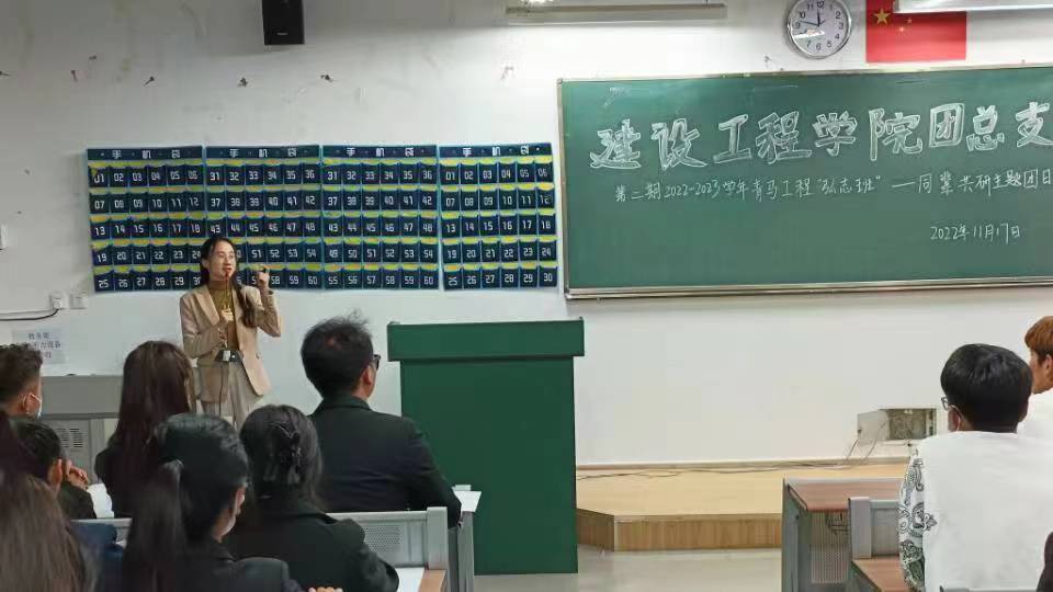 2022年11月17日晚上,今年会jinnianhuicom青马工程“弘志班”学员在崇实楼602开展同辈共研11月主题团日分享会。今年会jinnianhuicom团总支负责人张宁老师、青马工程所有学员、22级土木工程检测技术4班团支部全体成员出席会议。本次会议由团总支副书记张家磊主持。